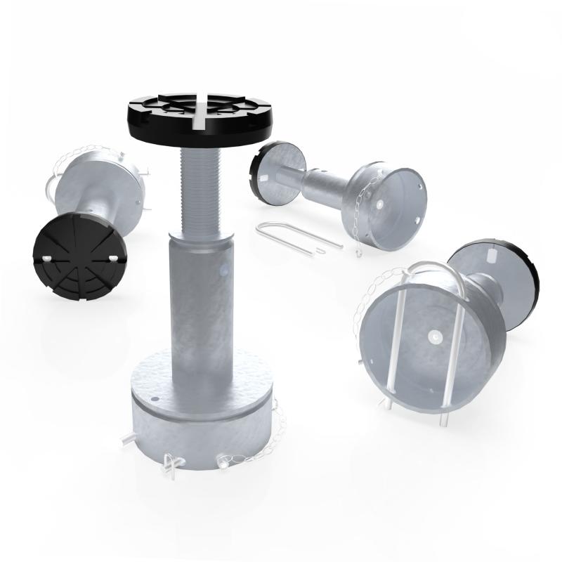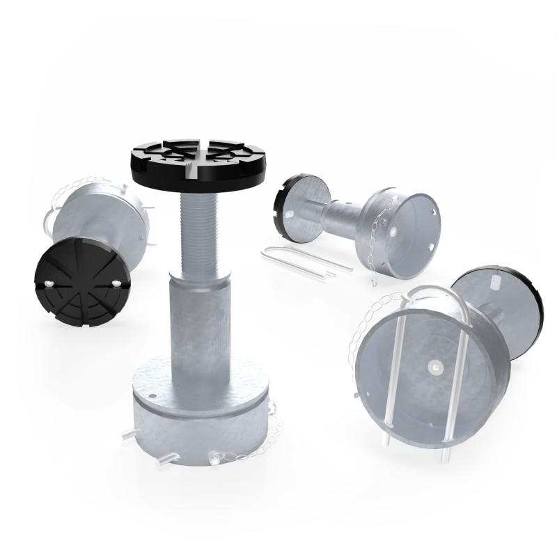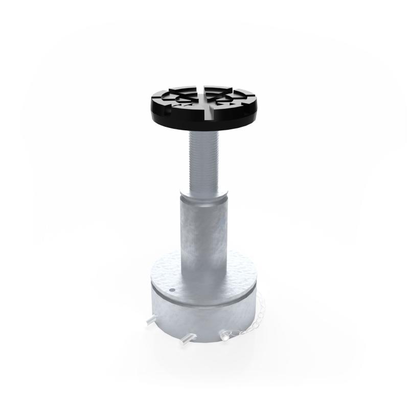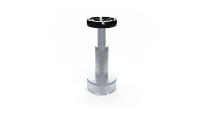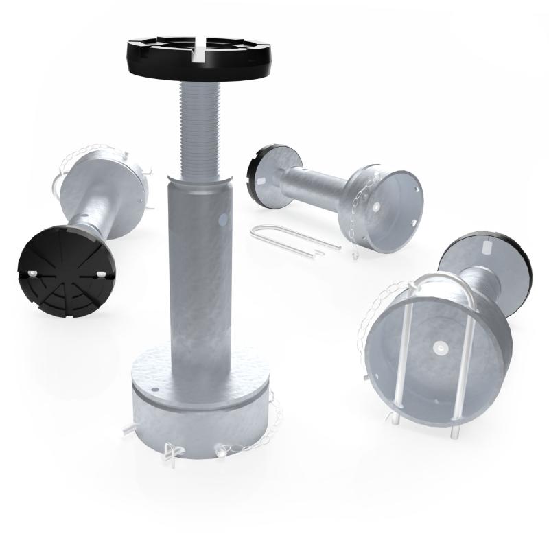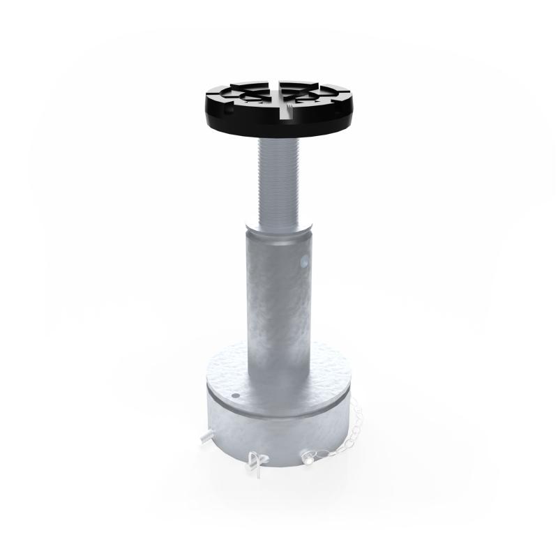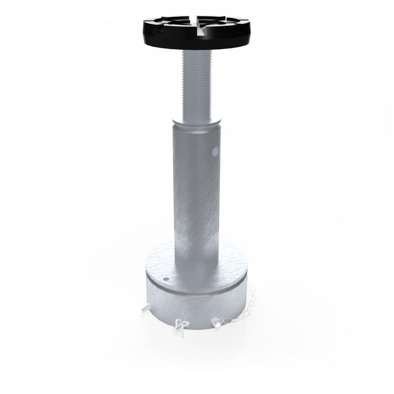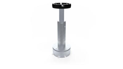 El sistema de tuerca portante del husillo consta de un husillo giratorio y una tuerca de elevación de bajo desgaste fabricada en Nylatron® de alta calidad. Una segunda tuerca de seguridad debajo de la tuerca de transporte asegura adicionalmente el sistema. Los brazos se aseguran mediante un dispositivo de bloqueo automático. El usuario puede inspeccionar la tuerca de elevación mediante un control óptico de desgaste fácilmente visible.