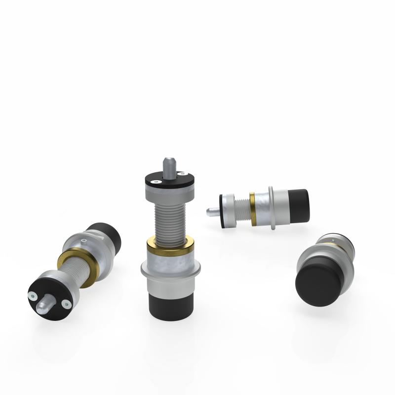 El sistema de tuerca portante del husillo consta de un husillo giratorio y una tuerca de elevación de bajo desgaste fabricada en Nylatron® de alta calidad. Una segunda tuerca de seguridad debajo de la tuerca de transporte asegura adicionalmente el sistema. Los brazos se aseguran mediante un dispositivo de bloqueo automático. El usuario puede inspeccionar la tuerca de elevación mediante un control óptico de desgaste fácilmente visible.